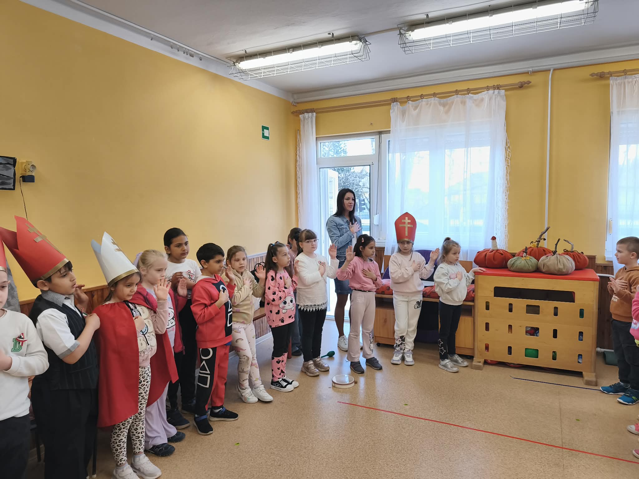 A hagyományokhoz híven idén is megrendezésre került a 2.c osztály Gergely-járása, amelynek keretében iskolánk tanulói ellátogattak a Baptista Szeretetszolgálat kisújszállási óvodáinak tagintézményeibe. A program során tanulóink egy kedves, vidám műsorral örvendeztették meg a szeptemberben iskolába készülő kisgyermekeket.