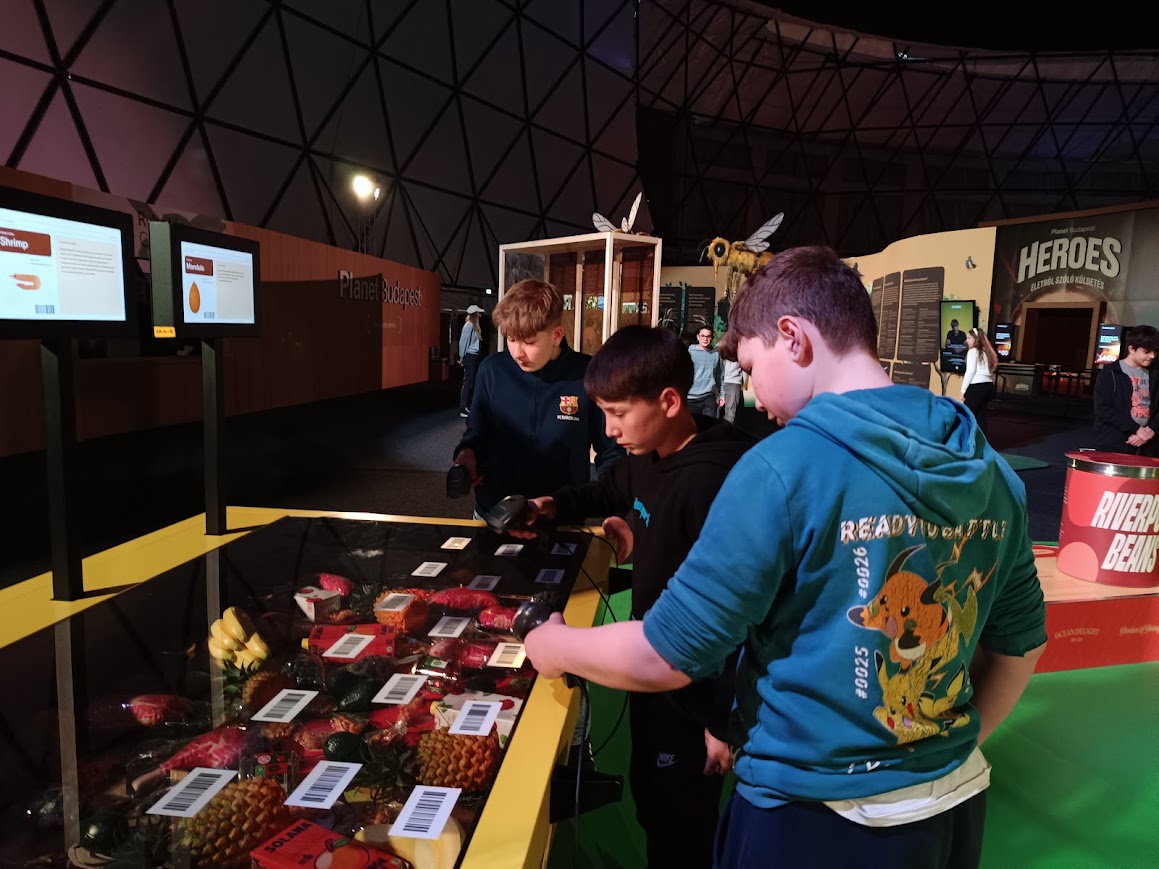 Február 25-én nyitotta kapuit a Planet Budapest ingyenesen látogatható kiállítása a fenntarthatóságról, a Vasúttörténeti Parkban. Sikeres regisztrációt követően, március 2-án 40 tanulóval és 4 kísérővel indultunk útnak, hogy mi legyünk a jövő hősei. Küldetésünk, hogy megmentsük a bolygót a „Szuperfogyasztótól”. Ehhez jó döntéseket kellett hoznia a gyerekeknek. A Föld jövője – ahogy a valóságban – itt is a természet, a gazdaság, a társadalom, a tudás és az épített környezet egyensúlyán múlott. A résztvevők közös célja, hogy küldetésről küldetésre haladva visszaállítsák ezt az egyensúlyt, miközben megismerik, hogyan függ össze minden döntés és tett a nagy egésszel. Tehát a cél a szemléletformálás, az élményeken keresztüli tanítás volt. A feladat elvégzése után a gyerekek szendvicset és gyümölcsöt kaptak, majd a kiállítás további részét tekintették meg. Sok hasznos információt olvashattunk, kipróbálhattunk különböző feladatokat. A látogatás mindenképpen hasznos volt, hiszen meg kell értenünk, hogy csak rajtunk múlik, hogy milyen környezetet hagyunk hátra a következő generációknak.